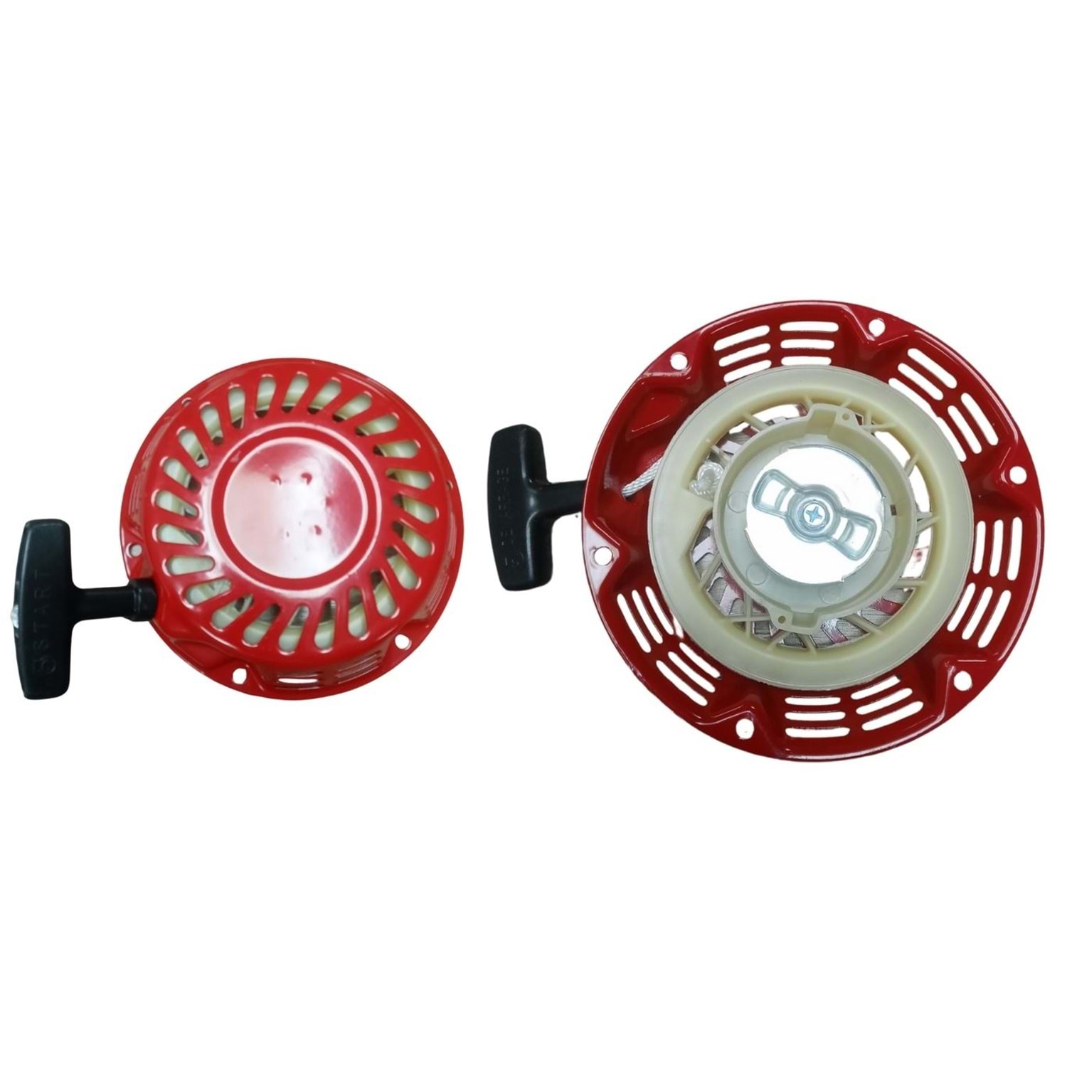 Benzinli Motor Starter Komple Honda GX160 Metal Tırnak, motorun yan tarafındaki fan kapağının üzerine 3 veya 4 cıvata ile monte edilen, kırmızı veya siyah metal gövdeye sahip, geri sarımlı çalıştırma mekanizmasıdır.