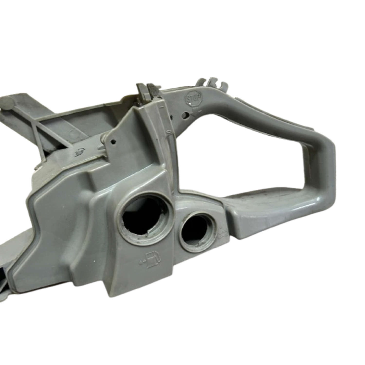 Motorlu testere benzin deposu s4100 (gri, kırmızı) orijinal, testerenin arka alt kısmını oluşturan, yakıtı depolamanın yanı sıra operatörün makineyi kumanda ettiği arka sap tertibatını da içeren ana gövde ünitesidir. Teknik olarak "yakıt tankı ve arka kontrol grubu" olarak adlandırılır. LSI anahtar kelimeler bağlamında; "arka tutma kolu", "komple yakıt haznesi" veya "tetikli depo gövdesi" olarak da tanımlanmaktadır.
