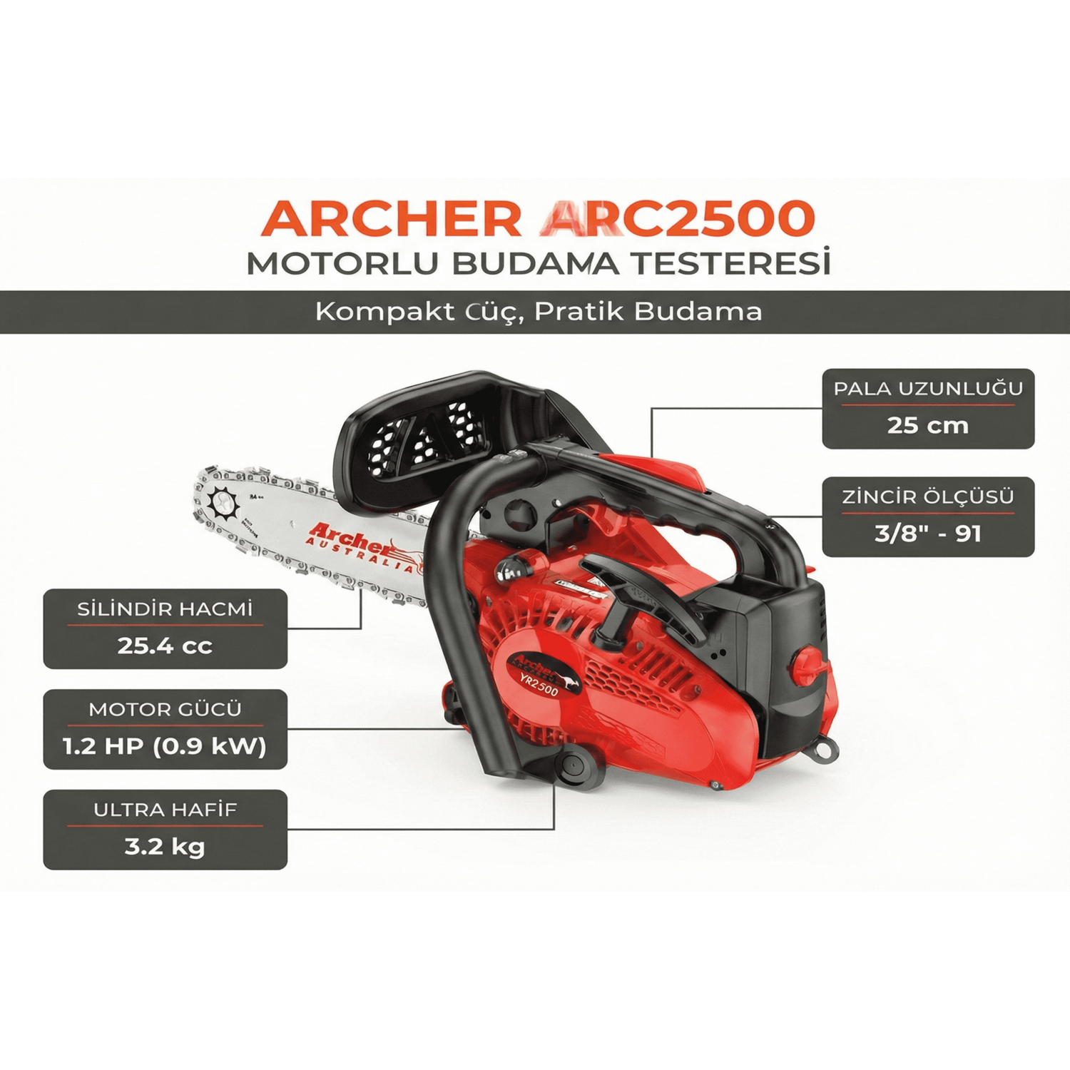 Yedek Parça ve Servis Kolaylığı: Archer markası, sektörde bilinen ve parçası kolay bulunan bir markadır. kes-mak.com gibi güvenilir tedarikçiler sayesinde, ihtiyaç duyduğunuz her türlü yedek parçaya (zincir, dişli, starter kapağı vb.) hızla ulaşabilirsiniz.